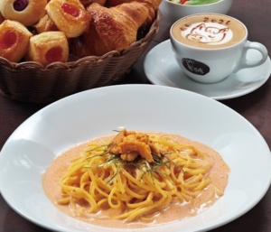パスタ・おかわり自由の焼き立てパン・サラダorコーンスープ・選べるドリンク